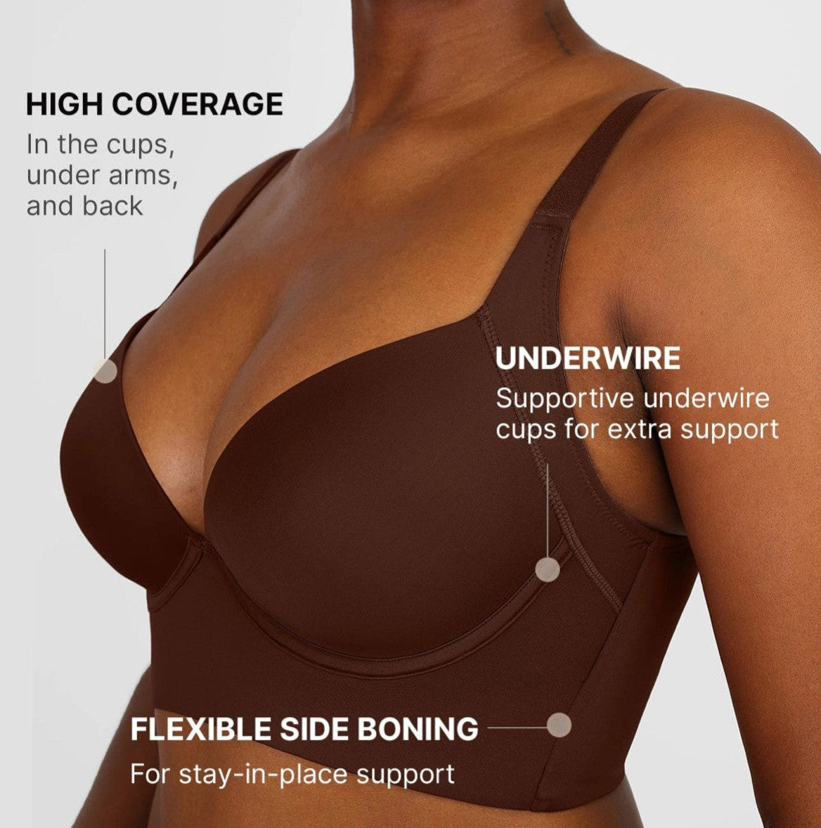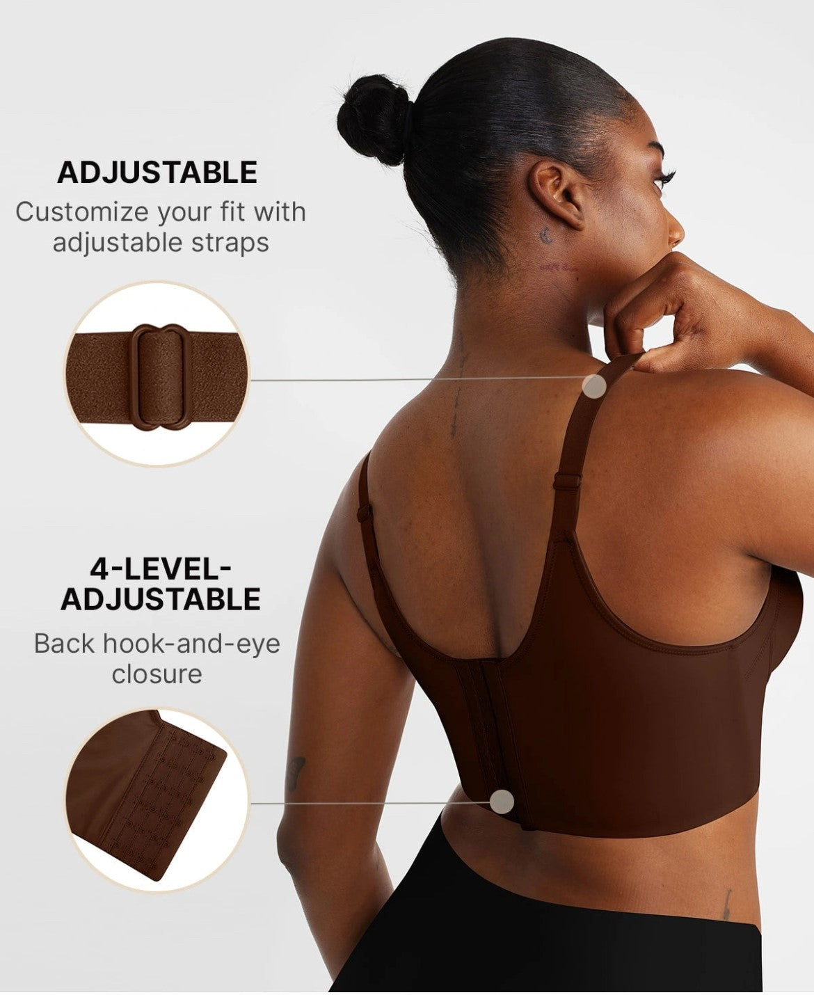 This is the first bra I’ve worn all day without wanting to take it off the moment I got home. The adjustable support makes a huge difference — some days I want more lift, other days just comfort, and this bra does both effortlessly. The shape looks natural, not forced, and it stays in place without digging in or straining my shoulders. The fabric feels smooth, soft, and really well made, which you can tell as soon as you put it on. Shipping was fast, customer service was helpful with sizing, and the whole experience felt easy. This has honestly replaced most of my other bras and i love it so much !